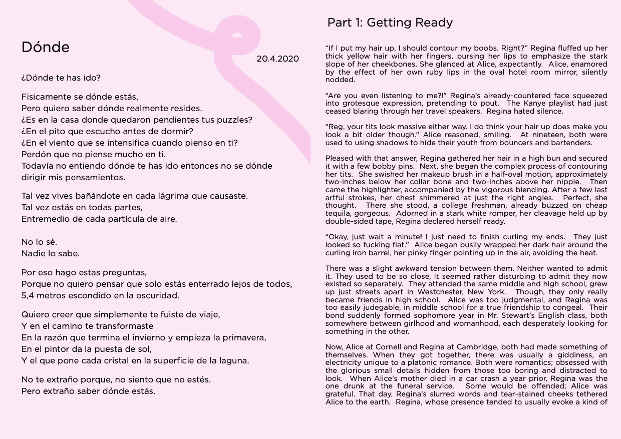 All of the writing and content were done by Claudia’s sister while the graphic design and layout were done by Claudia herself.